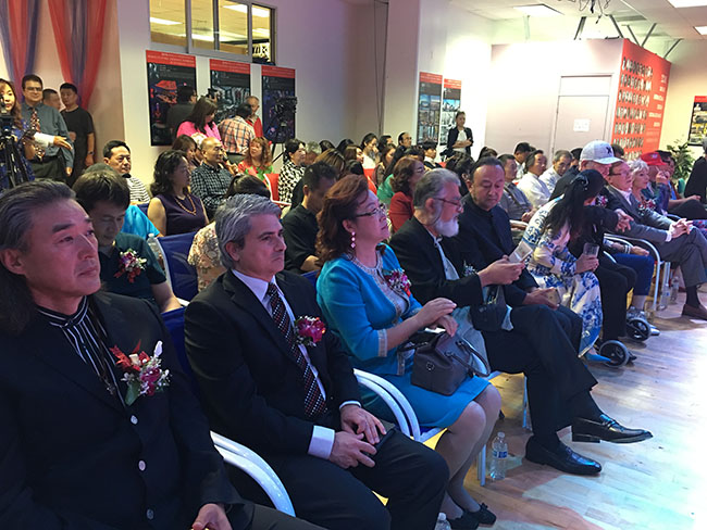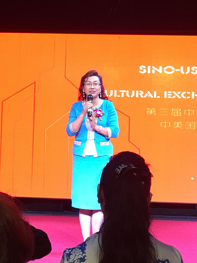主办方美中经贸文化促进会朱俊英会长在致辞中表示,通过我们的工作,要把中美之间的文化交流做好桥梁,刚才我算了一下,大概来了各个会的50多位会长,也来了许多艺术家,希望大家加盟,把中美之间或者和世界各国之间的文化交流开展起来,我们做好服务工作,非常感谢大家的到来。