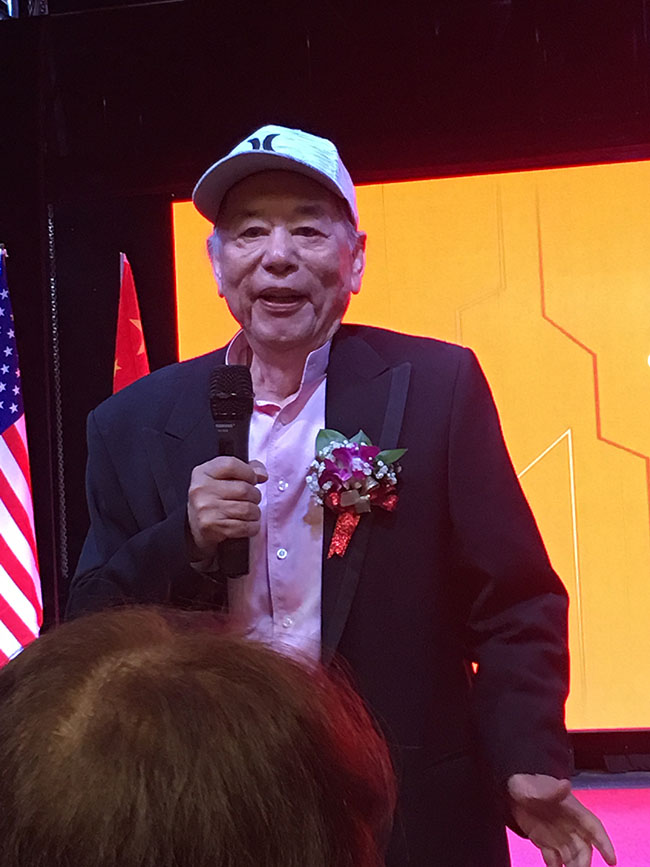 美国奉商总会会长朱俊英致辞。