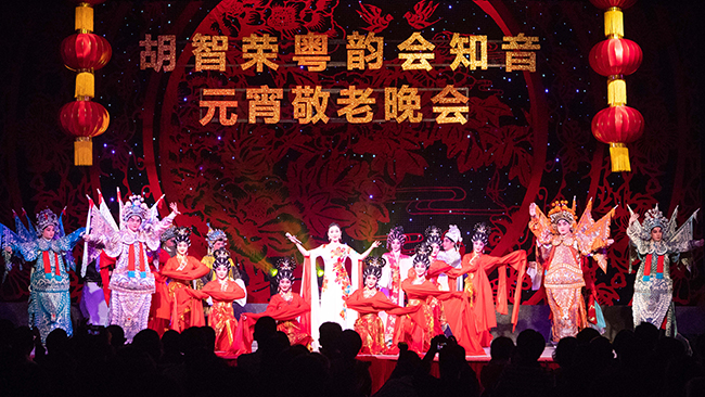 晚会以一首欢快的开场曲拉开帷幕,由广东粤剧院党委书记、著名粤剧表演艺术家曾小敏领唱,而作为晚会的压轴于最后献演的,则是由曾小敏再度出场,与广东省剧协主席、同是著名粤剧表演艺术家的丁凡合演脍炙人口的折子戏《柳毅传书之“花好月圆”》,演来细腻传神,美得让人心动神驰,将晚会推向了最高潮!看着这一敬老演出晚会获得圆满成功,胡智荣十分激动,他表示:“不单只是我和表演者喜爱粤剧粤曲,我们更希望更多人来传承普及戏曲文化,我将会不忘初心,继续努力,和大家一起将它发扬光大!”