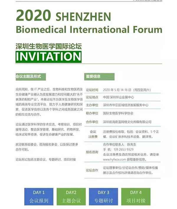 2020深圳生物医学国际论坛邀请函
