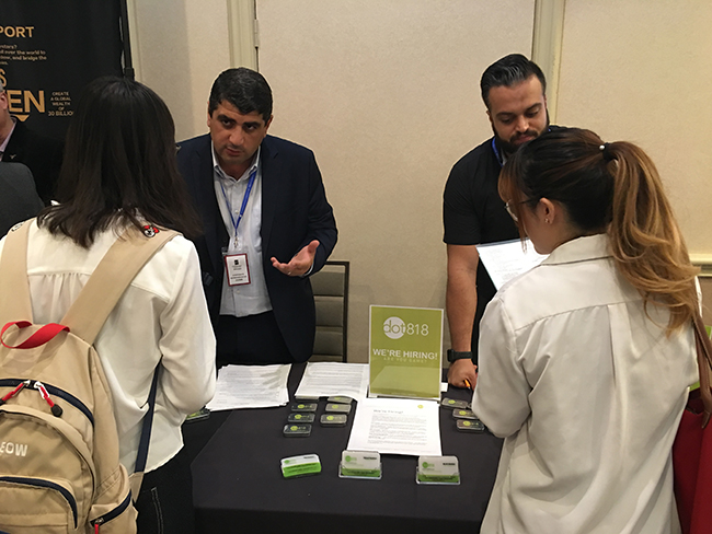 10月24日HG+和南加大强强联手在南加大校园酒店共同举办第五届ICF国际人才招聘会。超过40多家企业到国际人才招聘会现场招聘人才,其中不乏有世界著名的美国以及中国的大企业,包括亚马逊,Hulu,苏宁,中国电信,中国移动,上海振华重工等著名企业,也有许多洛杉矶当地的企业和华人企业,包括途风旅游,AIFG 诚信国际保险,华人工商,汉天卫视,法保网,NewCare 试管婴儿,雄狮旅游,网达网页设计等,为今天到场的750多名参会的求职者提供工作职位和招聘服务。职位可以是全职或兼职,专业覆盖工程,技术,医学,商业,金融等各个方面。为学生们提供了一个很好的寻找工作的机会。