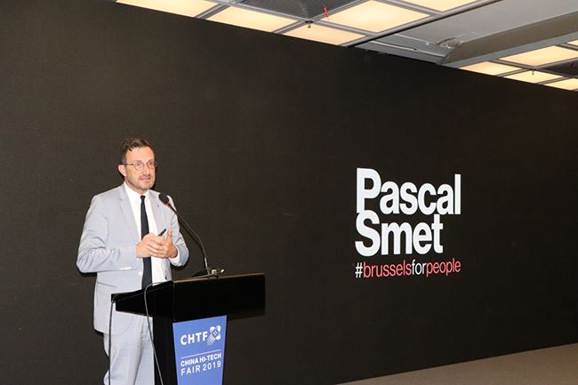 比利时布鲁塞尔首都大区城市规划及文化遗产、欧洲及国际关系、对外贸易和消防及紧急医疗救助政府大臣Pascal Smet在论坛上发言。