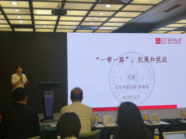 北京师范大学新兴市场研究院副院长、经济学副教授刘倩博士在论坛上演讲。