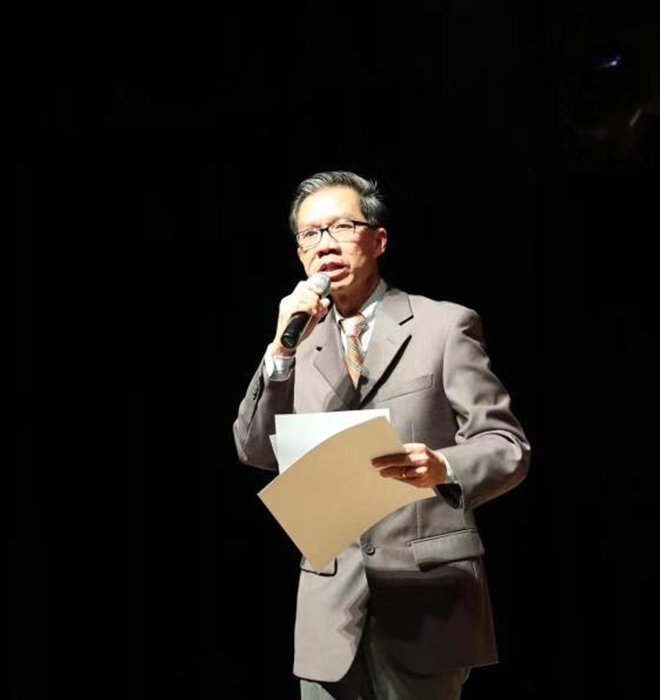 加州衆議員周本立在演出前致辞