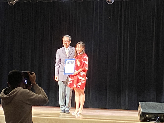 加州衆議員周本立给导演颁发贺状