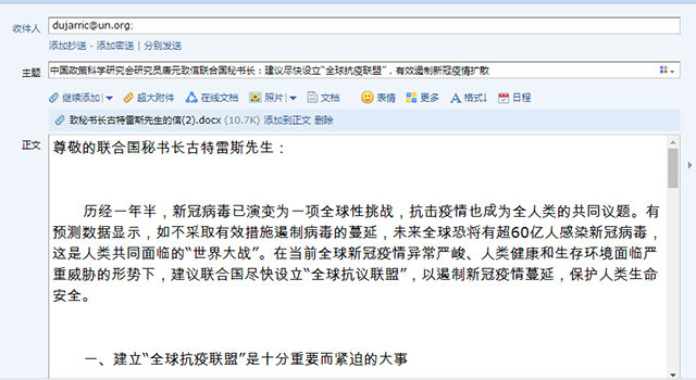 今年2月初,中国政策科学研究会研究员唐元,倡议尽快设立“全球抗疫联盟”,以遏制新冠疫情全球继续蔓延。近段时间,印度疫情日趋严重,全球抗疫形势更加严峻。有预测数据显示,如不采取有效措施遏制病毒的蔓延,未来全球恐将有超60亿人感染新冠病毒,这是人类共同面临的“世界大战”。为此,唐元忧心如焚,5月4日直接致信联合国秘书长,敦促尽快设立“全球抗疫联盟”。他认为,在当前全球新冠疫情异常严峻、人类健康和生存环境面临严重威胁的形势下,设立全球抗疫联盟,是有效遏制疫情扩散、保护人类生命安全的一大举措,是一项十分重要而紧迫的大事。