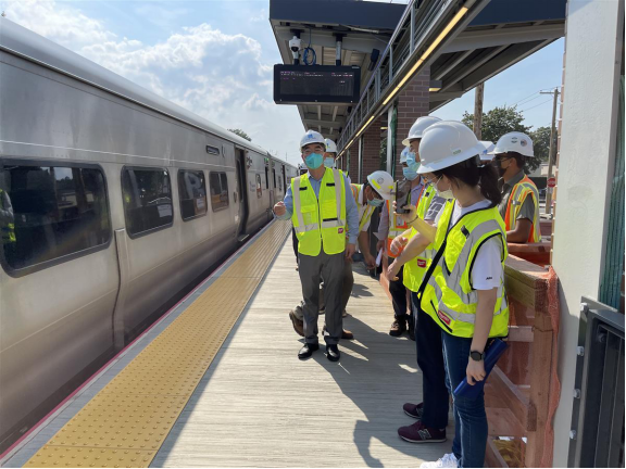长岛铁路新线工程总合同额超过18亿美元,涵盖新建长度约16公里的长岛铁路第三条轨道,以及改扩建沿线设施等。黄屏总领事重点调研了New Hyde Park和Mineola 车站附近铁路轨道铺设、设备配电站电力系统及附属设施的施工,并实地了解已竣工投入使用的新建铁路立体交叉口运营情况。黄屏指出,该设计建造项目与数百万纽约当地居民的日常通行息息相关,是纽约地区最重要的民生项目之一。希望中建公司能按时、优质地完成该项目,为改善社区居民出行、进一步提升生活水平作出贡献。