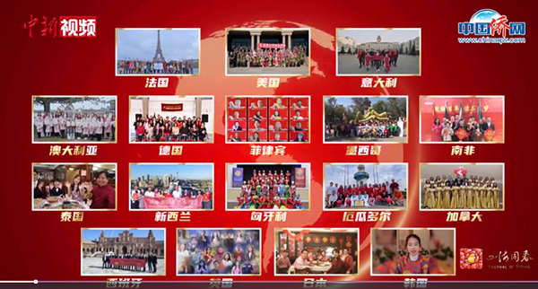 “四海同春”2022全球华侨华人新春云联欢于2月15日正月十五元宵节在中国新闻网、中国侨网面向全球播出。中国田径短跑运动员苏炳添;花样滑冰运动员张丹张昊;国际钢琴家郎朗;北京冬奥会火炬外观设计师李剑叶;演员王祖蓝、黄晓明、符龙飞、鞠婧祎;青年歌手王嘉尔、朴树等文体明星通过视频形式向全球华侨华人送来元宵节祝福。