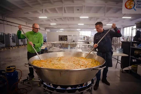 “厨师们帮助乌克兰”(Chefs For Ukraine)是世界中央厨房援助乌克兰难民行动的口号。世界中央厨房由名厨何塞·安德烈斯(José Andrés)于2010年海地发生大地震后提议成立,联合全球各地厨师及志愿者在发生人道灾难时就地提供食物解决饥饿问题。自成立以来,世界中央厨房已在多米尼加、尼加拉瓜、赞比亚、秘鲁、古巴、乌干达、柬埔寨、波多黎各等国家组织了多次提供膳食行动,在新冠疫情大流行期间也在美国提供食物给有需要的民众。普京下令入侵乌克兰后,安德烈斯立刻宣布,他将拿出亚马逊创办人杰夫·贝索斯(Jeffrey Bezos)捐赠给世界中央厨房1亿美元善款中的一部分,向乌克兰难民提供大规模食品援助。
