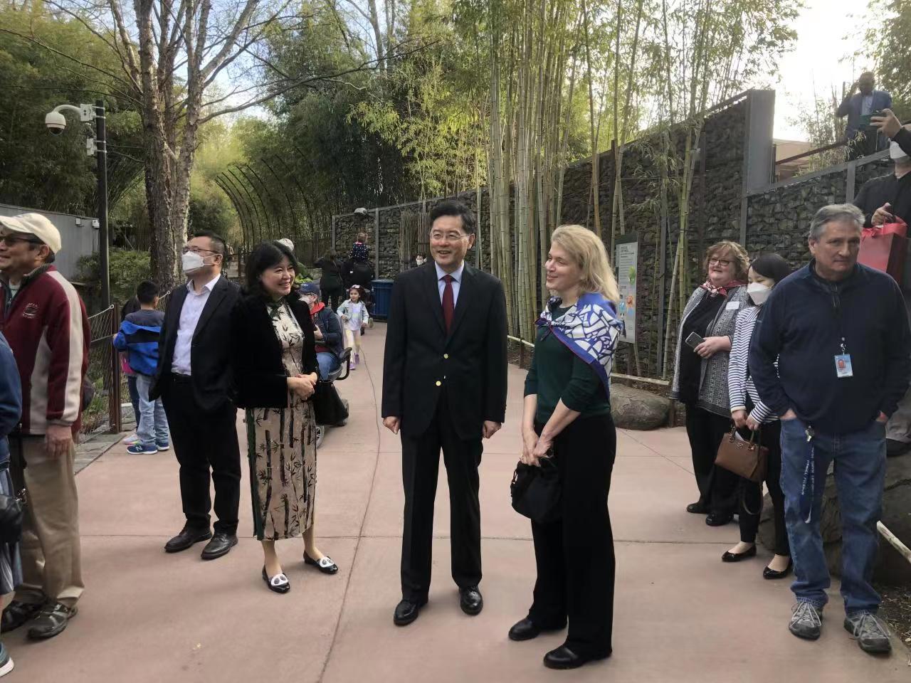 4月16日,美国国家动物园在大熊猫馆举行大熊猫抵美50周年庆祝活动,秦刚大使应邀出席。 在史密斯园长陪同下,秦大使参观了大熊猫馆,看望了在馆的大熊猫“美香”、“添添”和“小奇迹”,并向媒体发表致辞。 秦大使在致辞中表示,50年来,中美在大熊猫保护研究合作上不断取得可喜的成绩。大熊猫从50年前的几百只增加到了目前1800多只,成功摘帽“濒危”,为地球的生物多样性保护树立榜样。这也证明中美携手努力,可以办成有利于世界的大事。相信我们有足够的智慧和勇气,像保护大熊猫一样,共同维护中美各领域合作并使它们结出更丰硕的成果,继续造福中美两国人民和世界人民。 史密斯园长表示,多年来,中美两国在大熊猫保育方面保持良好沟通,共同挽救濒危物种,大熊猫就是两国可以密切合作的最佳证明,也是连接两国人民的友谊使者。希望能与中方继续开展富有成效的合作,共同为大熊猫保护贡献力量。