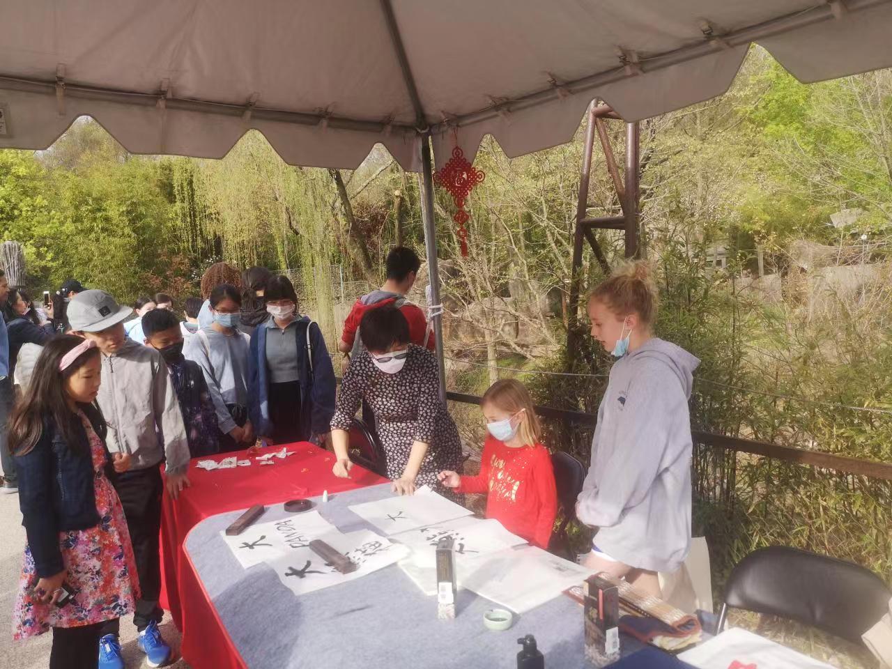 此次庆祝活动吸引了近两万名当地游客注册参加。游客们早早就等候在大熊猫馆外,饶有兴致地观赏大熊猫享用美食的场景。现场人头攒动,欢声笑语,游客们、尤其是儿童看到大熊猫兴致勃勃享用美食的场景,发出连连惊叹,纷纷拍照留念。  为配合庆祝活动,中国驻美使馆在大熊猫馆外设立文化展台,向游客赠送大熊猫纪念品及相关书籍。使馆工作人员还现场展示书法技艺,教授游客撰写“小奇迹”、“大熊猫”、“五十周年”、“友谊使者”等汉字。游客也排起长队,等候学写中国汉字。使馆厨师专门制作了大熊猫形状的豆沙包,受到现场游客的喜爱和热烈欢迎。