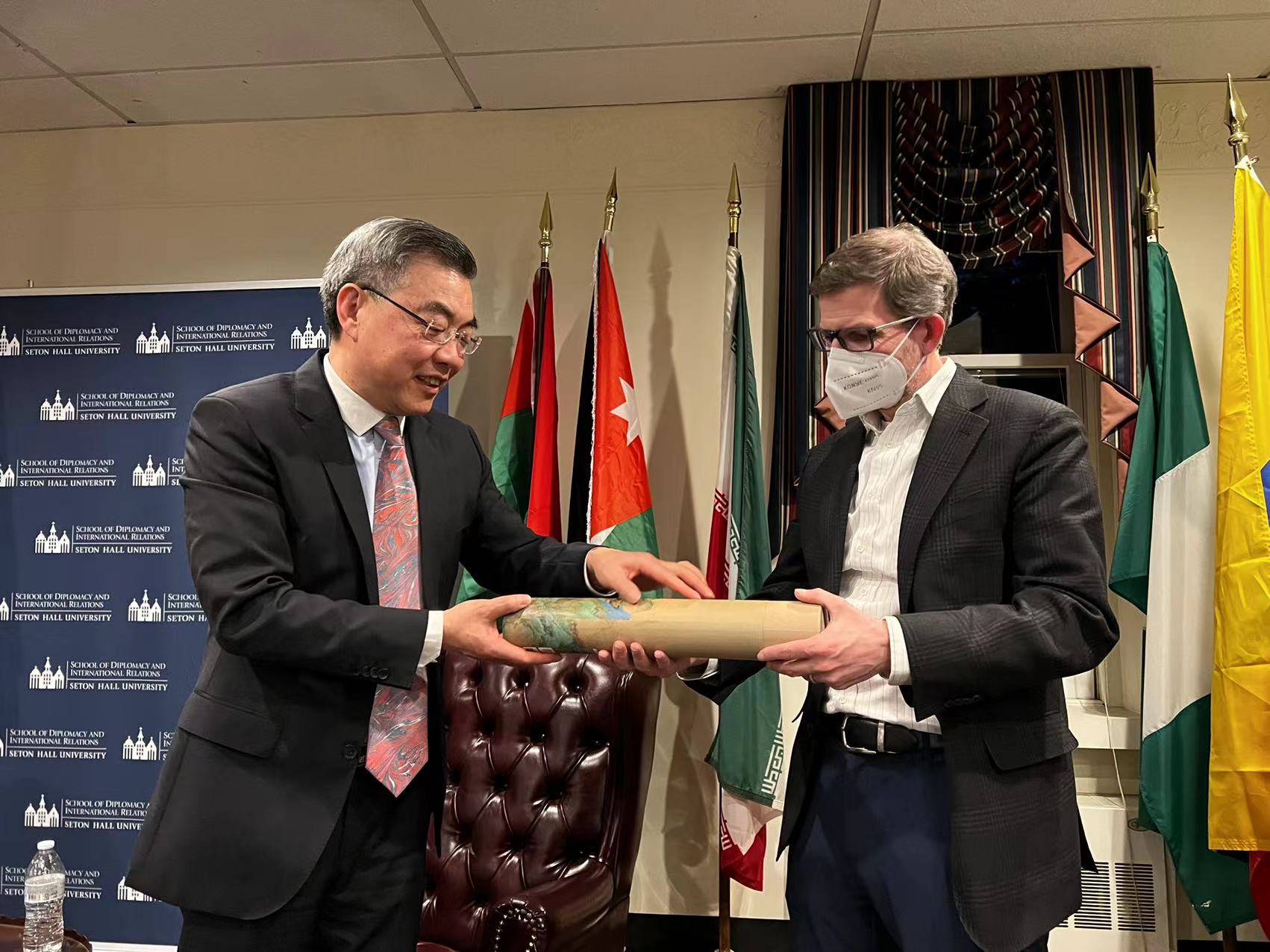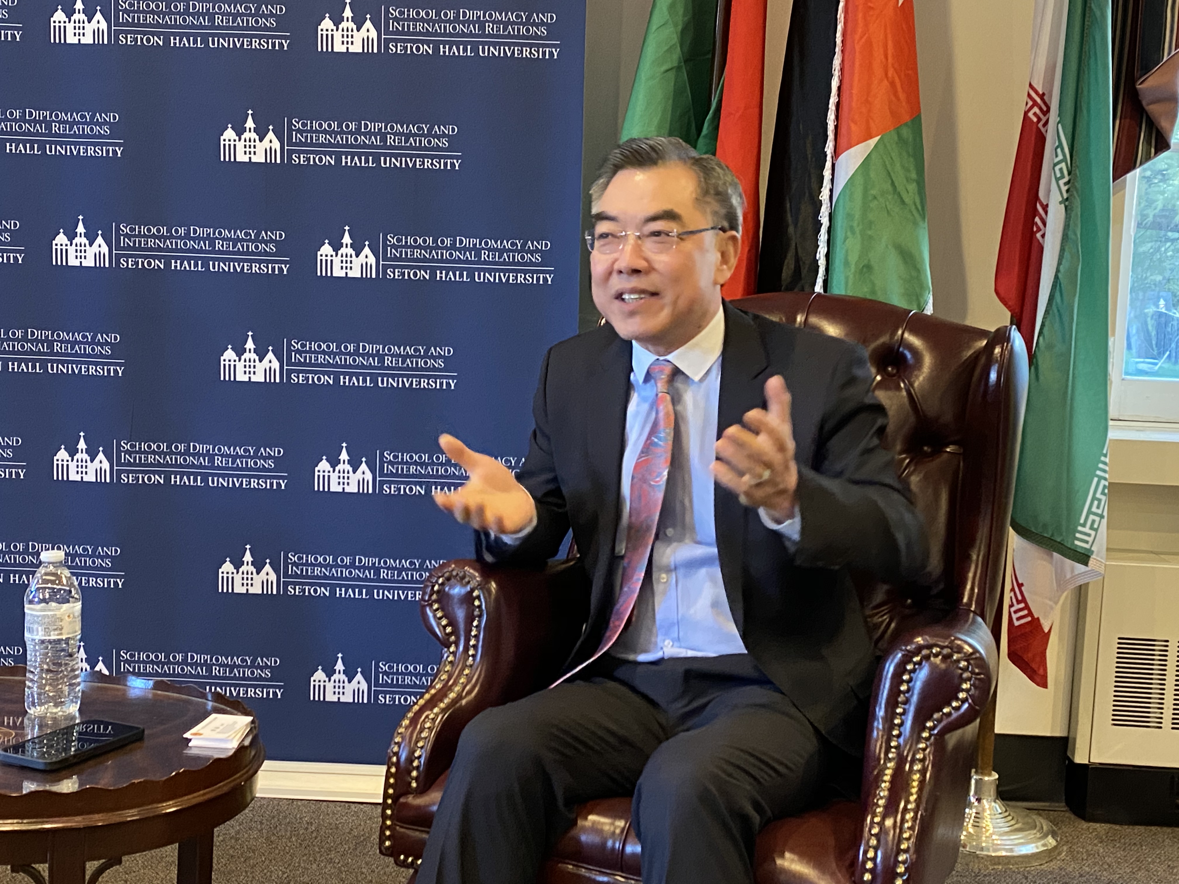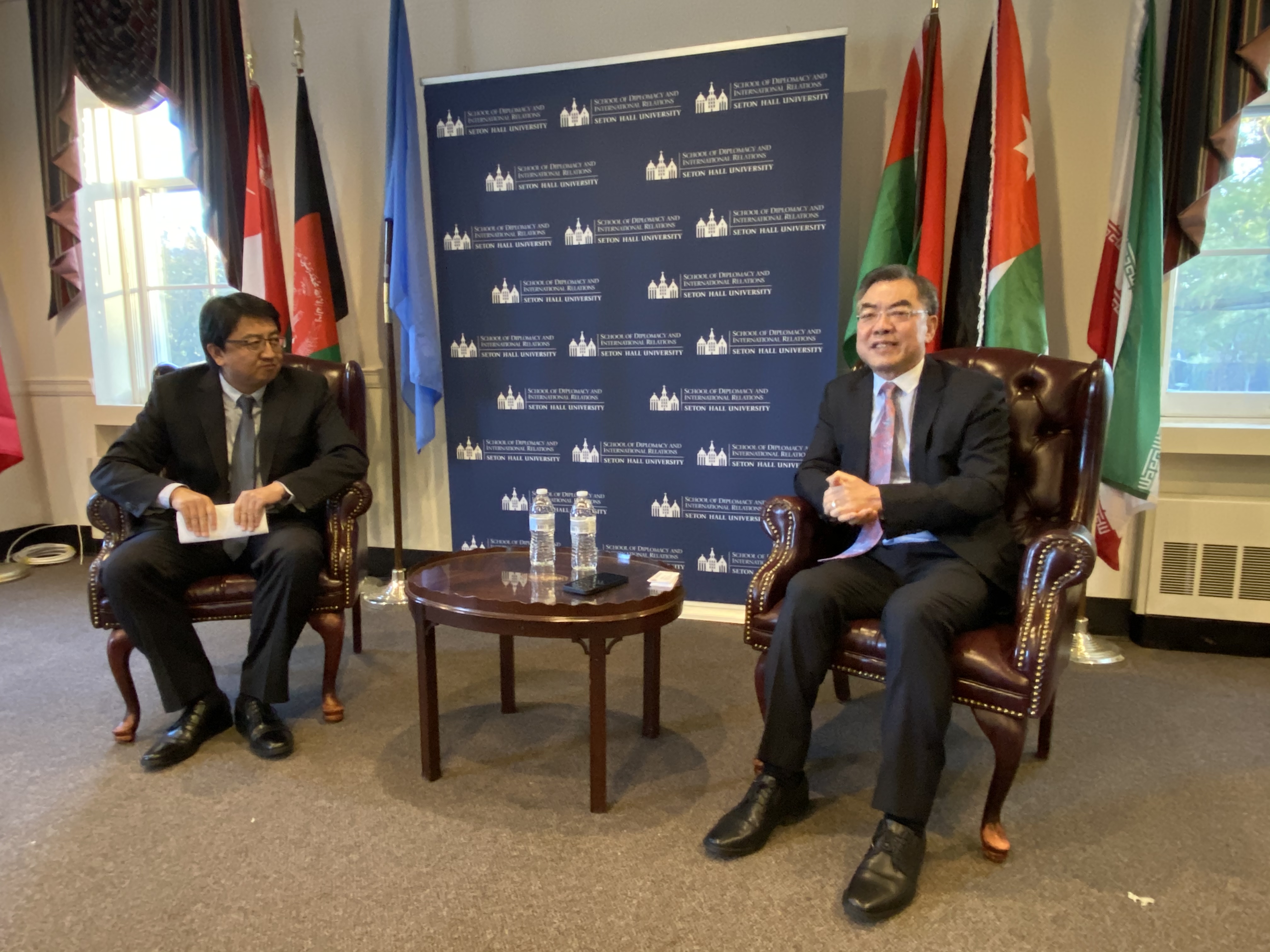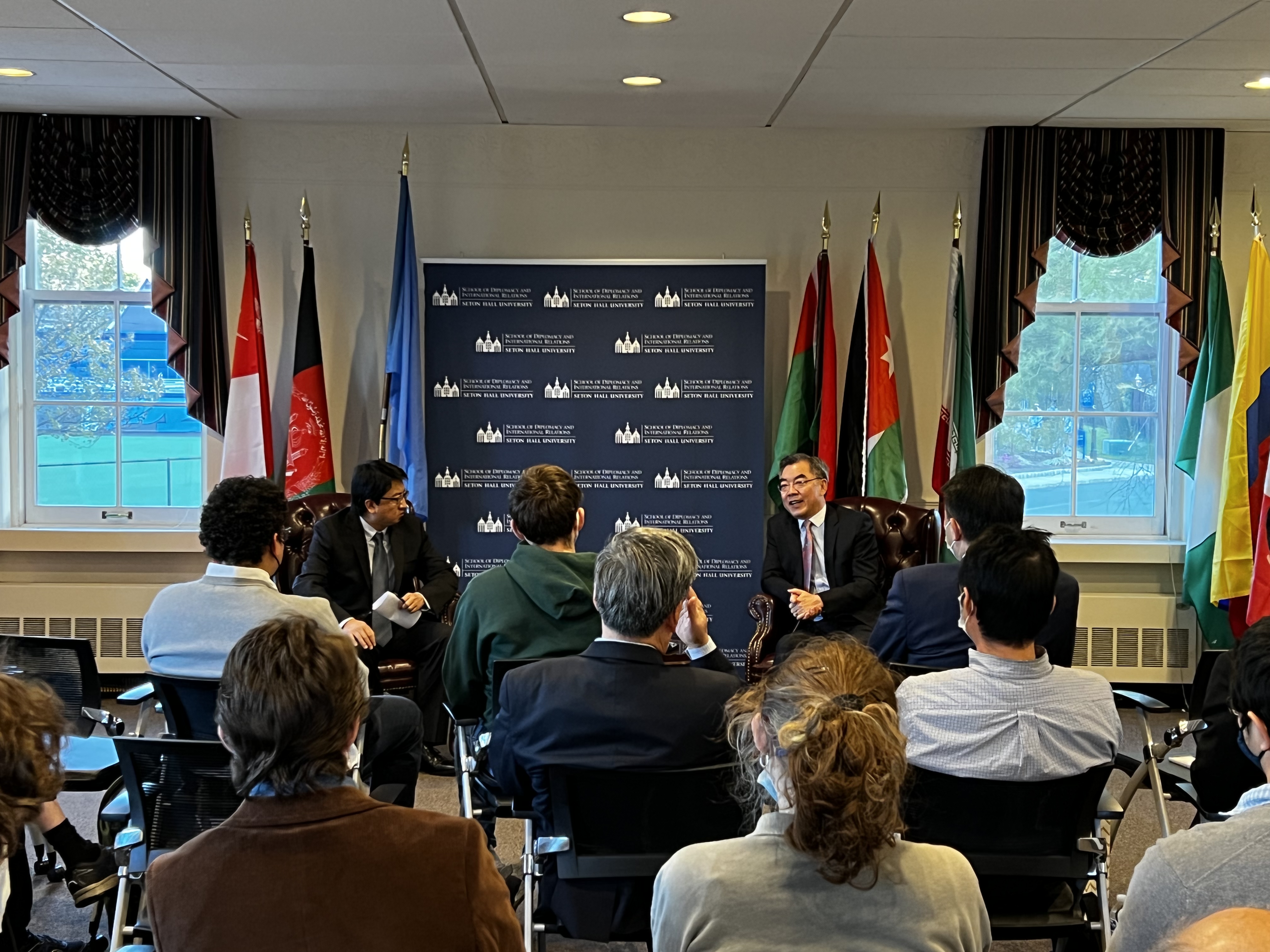 2022年4月28日,新泽西州世界事务理事会和西东大学外交与国际关系学院联合举办中美关系对话会,中国驻纽约总领事黄屏应邀出席并同来宾交流。西东大学教授汪铮主持活动,新州世界事务理事会会长恩格尔、西东大学外交与国际关系学院院长史密斯、新泽西州经济发展署国际贸易与投资总监沃德等和校方师生40余人参加。