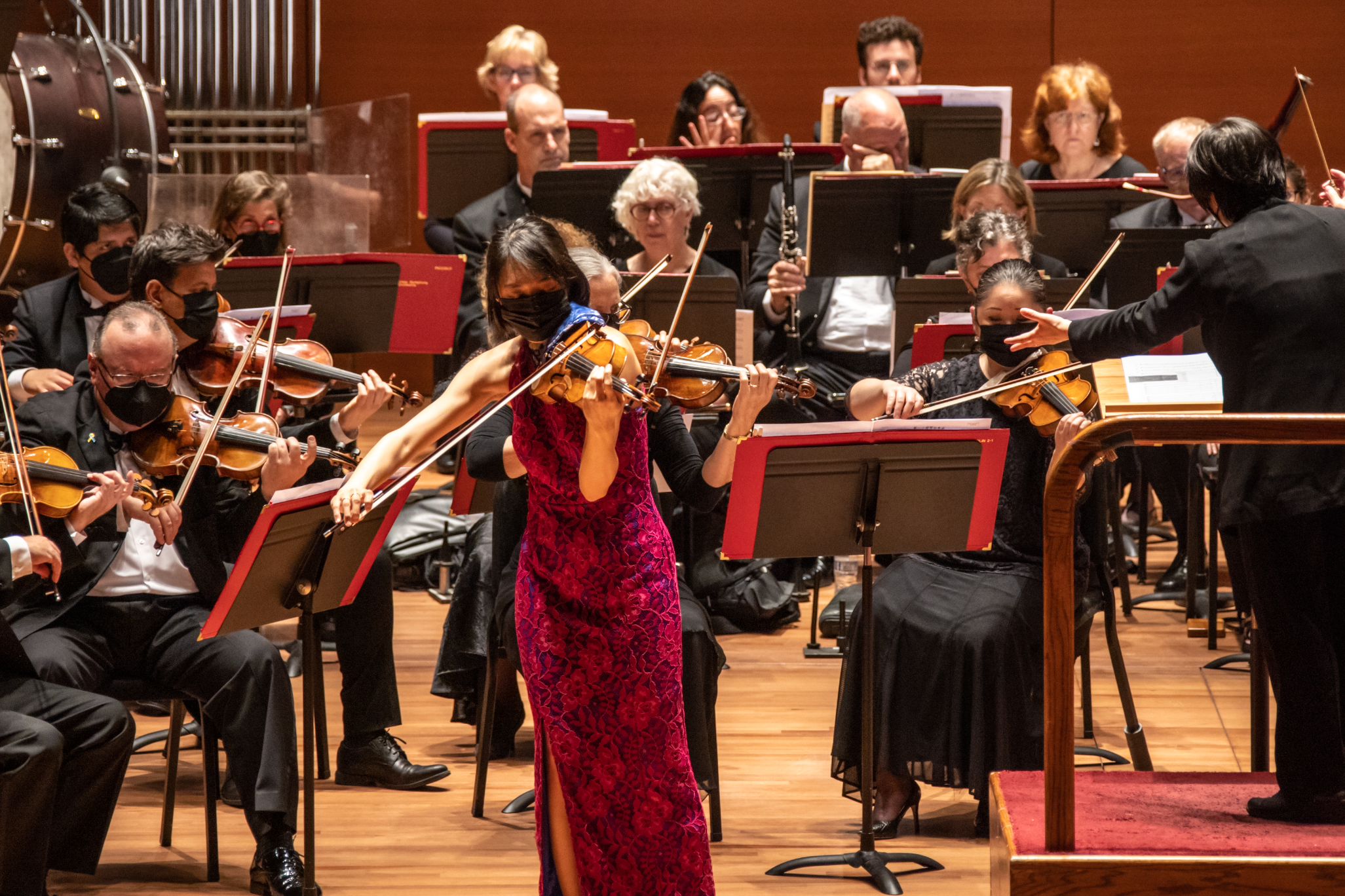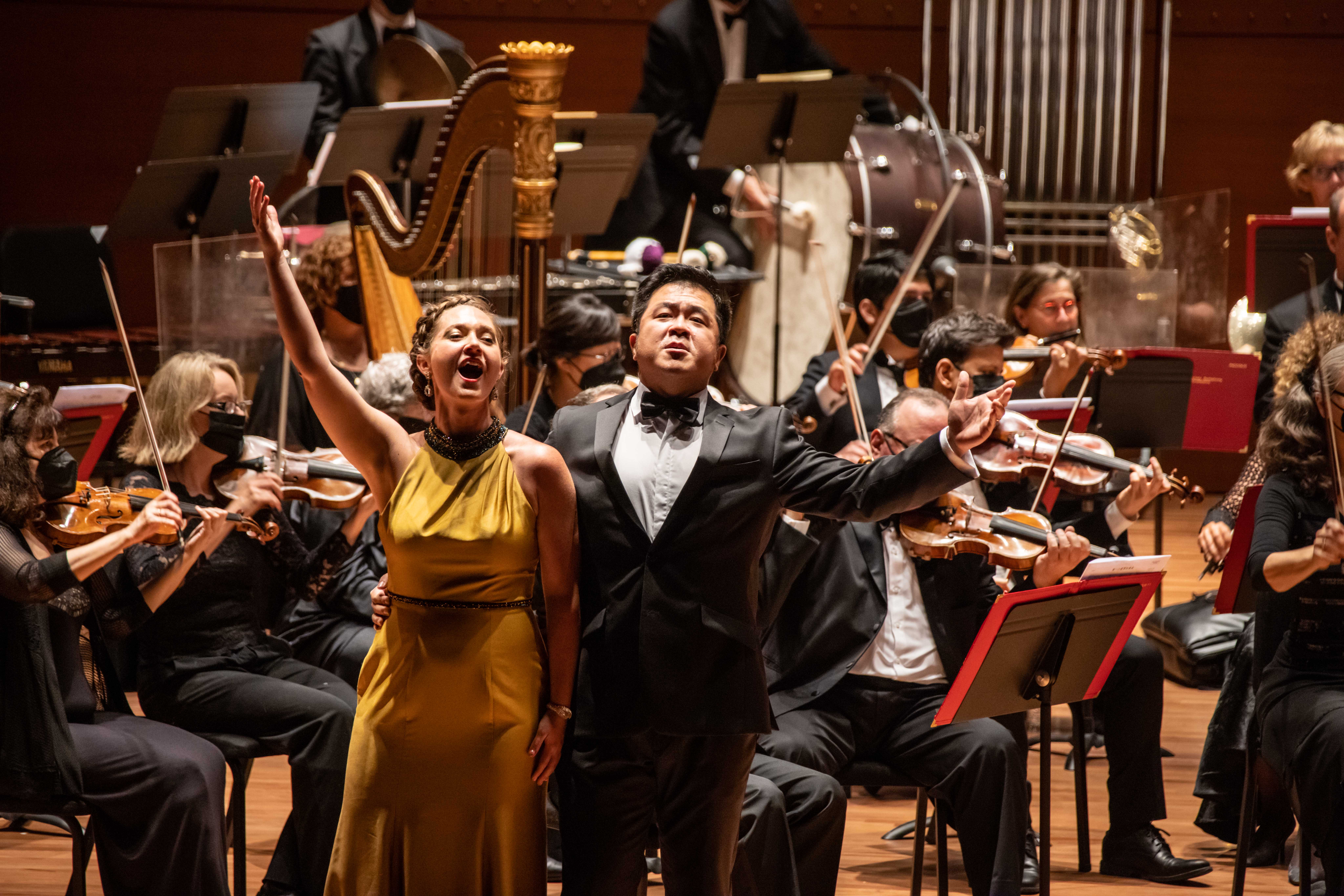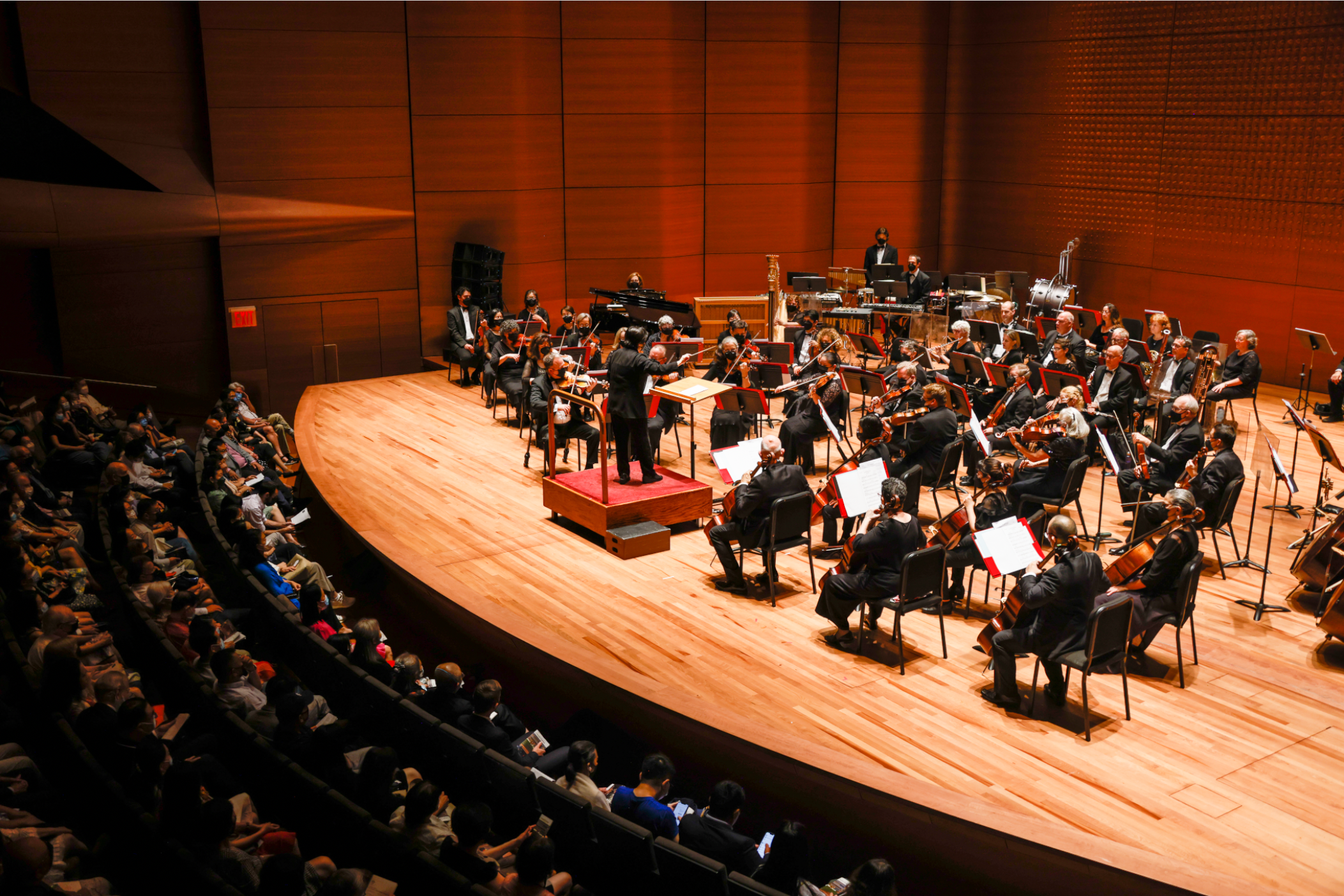 当晚演出由著名华裔指挥家张弦执棒新泽西交响乐团,呈现了一系列中西音乐佳作。音乐会以《中华风韵组曲》开场,演绎曾登上林肯中心的两部“中华风韵”品牌剧目舞剧《朱鹮》《孔子》配乐选段。郭紫尧和周颖两位乐坛新星分别带来陈其钢的钢琴协奏曲《二黄》和赵季平的《第一小提琴协奏曲》。新泽西交响乐团还呈现了在美国家喻户晓的名曲《阿巴拉契亚之春》。音乐会最后,iSing!艺术项目成员美国女高音埃丝特·莫琳·凯利和中国男高音郁永钊演唱《长江之歌》和《饮酒歌》,通过两首歌曲展现“东西之间”音乐会的主题,为当晚演出画上完美的句号。
