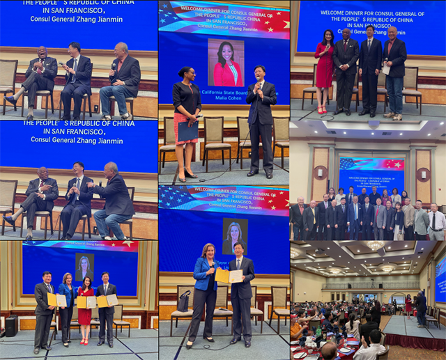 7月28日,张建敏总领事在南旧金山市出席美国潮商基金会主办的欢迎招待会,并与旧金山市前市长威利·布朗共同作为主讲嘉宾参加“中美关系机遇与挑战”专题论坛。加州平税局委员郭娴、圣塔克拉拉市市长吉尔莫、弗利蒙市副市长黄洁宜、圣马蒂奥副市长帕潘、萨拉托加市市议员赵嬿等民选官员及旧金山湾区各界友好人士出席活动。
