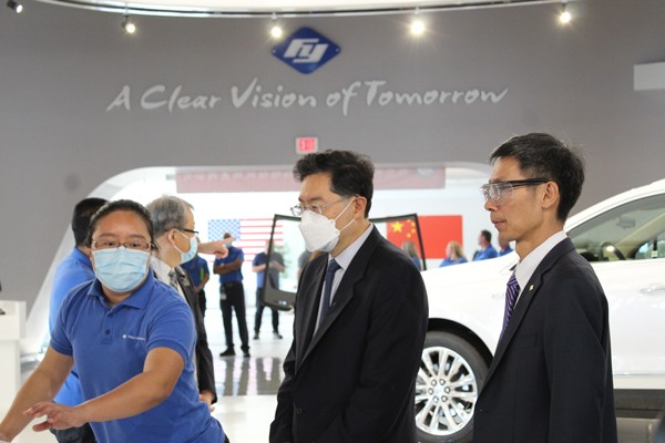 9月7日,秦刚大使访问了福耀玻璃美国有限公司位于俄亥俄州代顿地区莫瑞恩市的汽车玻璃生产基地。