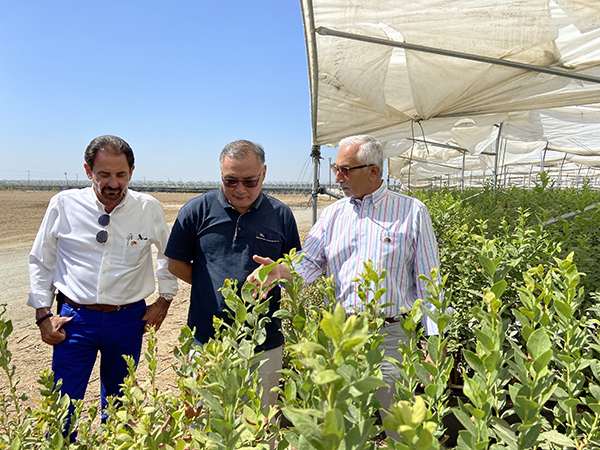 张总领事一行受到芒格家族成员的热情接待。在农场人员的陪同下,张总领事一行先后参观了开心果、扁桃仁、蓝莓种植园以及产品加工车间和仓储设施,近距离了解果木种植和养护以及高度机械化、智能化的果实采摘、加工筛选和储存等全流程,听取农场负责人有关产品对外销售特别是对华出口等方面情况的介绍。据介绍,芒格农场已同中国开展长达三十多年的开心果贸易,每年销往中国市场的开心果多达数百万磅。
