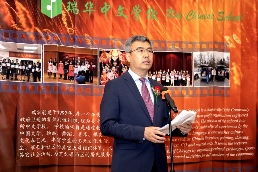 赵建总领事在致辞中表示,发展海外华文教育是留根和铸魂工程,也是关乎海外侨胞自身发展的民生工程,需要全体华文教育工作者共同努力。30年来,瑞华中文学校克服各种困难,辛勤耕耘,桃李满园,成为中西部地区规模最大的中文学校,成绩有目共睹。美国中西部地区包括瑞华学校在内的一大批中文学校积极开拓进取,为华人社区青年一代的文化传承和整个华人社区的团结发展,为推进中美交流合作作出了积极贡献。不管时代如何发展变化,艰苦奋斗、同舟共济,文明进步、开放包容,始终是中华民族不懈追求的优秀品格。中美是两个大国,中美两国人民都是勤劳智慧的民族,两国在促进各自以及共同发展、在引领世界繁荣合作进步、在推进构建人类命运共同体等方面,拥有广泛的共同利益,肩负着重要的共同责任。希望广大中文学校和华人社区作为美多元文化的建设者、贡献者,作为中华文化的传承者和中美交流合作的参与者,为促进海外华文教育事业发展作出更多努力,为培养热爱中华传统文化、热心中美交流合作的青年一代作出更大贡献。