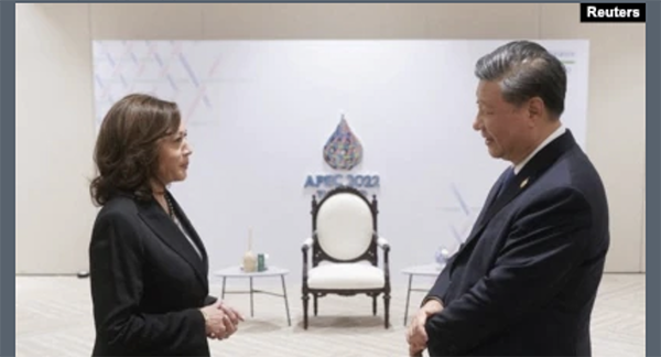 11月19日,美国副总统哈里斯在曼谷利用出席亚太经合组织(APEC)非正式领袖会议的机会,与中国国家主席习近平举行了简短的会晤。这是美国总统拜登在印尼巴厘岛与习近平举行双边正式峰会后,美中领导人的又一次面对面的沟通。哈里斯再次强调,“我们必须保持沟通渠道的畅通,以便负责任地管理我们两国之间的竞争。”习近平说,“希望双方进一步增进相互了解,减少误解误判,共同推动中美关系重回健康稳定的轨道。”