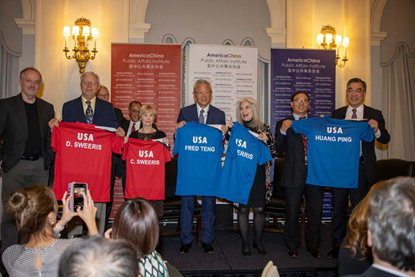 白莉娟、斯威里斯夫妇在座谈中回顾中美“乒乓外交”的难忘历程,重温“小球转动大球”的历史佳话,表示“乒乓外交”让两国人民友谊开花结果,不断促进美中友好交往和互利合作。双方应继承和发扬“乒乓外交”精神,让人文交流和民间往来继续为美中关系发展增添更多正能量。