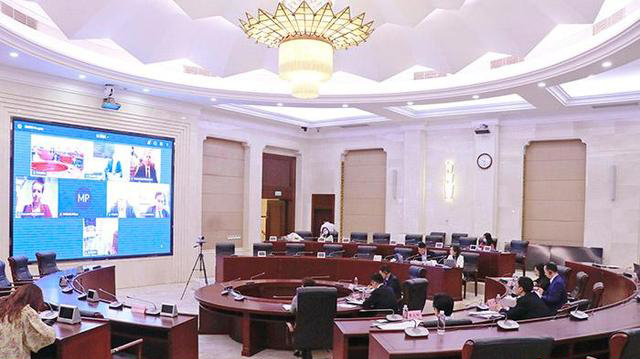 图为中国重庆市参与视频会议交流现场。中新社发重庆市外办供图