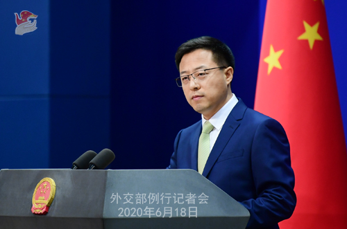 2020年6月18日外交部发言人赵立坚主持例行记者会。
