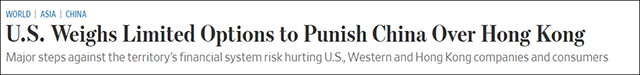 还有许多美国经济官员称因当下全球经济正因疫情而持续低迷,他们反对对香港实施重大金融制裁。