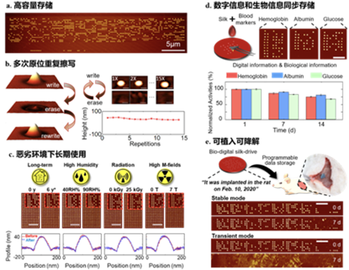 陶虎课题组联合纽约州立大学石溪分校和德州大学奥斯汀分校相关课题组,首次实现了基于蚕丝蛋白的高容量生物存储技术。