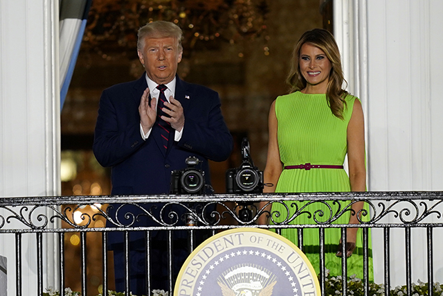 特朗普和梅拉尼娅在白宫二楼阳台向现场支持者致意。(本文图片来源均据美联社)