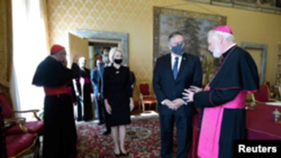 蓬佩奥10月1日访问了梵蒂冈,与梵蒂冈的高级官员举行了会谈,并讨论了中国的宗教自由问题。不过,教宗方济各以“不会在美国大选前接待任何政治人物”为由拒绝与他会面。蓬佩奥最近在访欧前发表文章,公开呼吁罗马教廷不要与北京续签一个为期两年的主教任命协议。