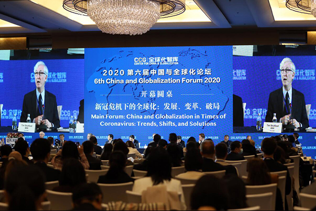 11月11日至12日,第六届中国与全球化论坛在北京举行,美国前助理贸易代表、中国美国商会前主席夏尊恩(Tim Stratford)在开幕圆桌上说:“美中两国完全脱钩是不可能实现的,而且也不能出现。例如,在气候变化、抗击新冠肺炎疫情、防止核扩散、金融等问题上,必须合作,合作对两国和全世界都好。”