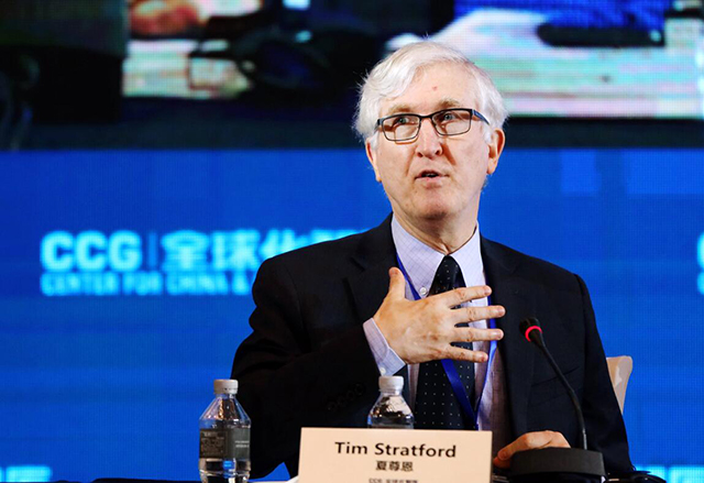 11月12日,第六届中国与全球化论坛在北京举行,美国前助理贸易代表夏尊恩(Tim Stratford)出席并在论坛开幕圆桌会议上发言。(图片来源:侨报特约记者卞先锋摄)