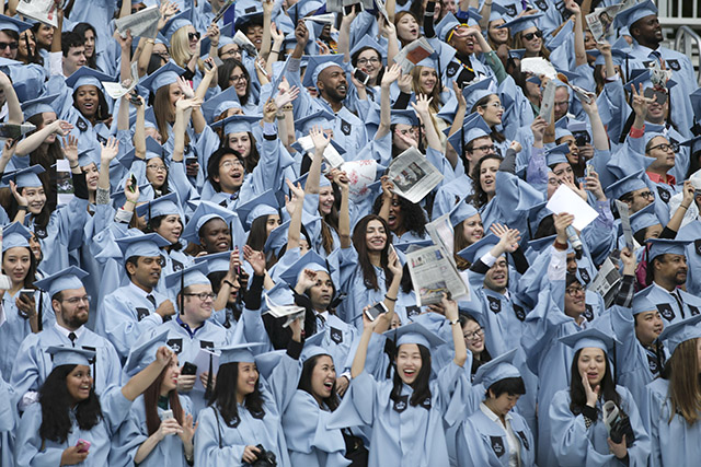 图为2016年5月18日,参加哥伦比亚大学毕业典礼的学生在欢呼。(图片来源:中新社资料图)