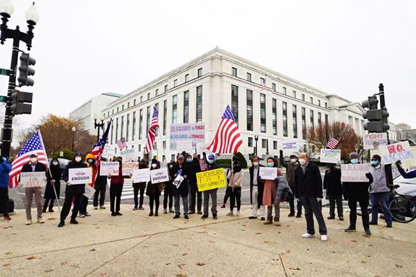 美国华人联合会主席薛海培是本次抗议活动的组织者之一。他在现场宣读了该协会写给参议院两党领袖的公开信。信中称,布莱克本的言论充满了种族歧视色彩,作为一名联邦参议员向一个具有悠久历史的文明及其人民进行如此低劣的攻击是及其罕见的行为。
