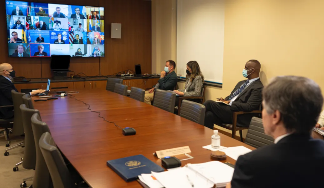 布林肯国务卿与联合国秘书长安东尼奥·古特雷斯举行了在线会晤,讨论美国在联合国的优先事项,包括捍卫人权,共同应对全球挑战,以及改善阿富汗、叙利亚、埃塞俄比亚和利比亚的安全局势及对人道主义援助的获得。布林肯国务卿在推特上说,“我们期待共同努力着手解决全球挑战,加强联合国和多边体系的基本原则和价值观。”