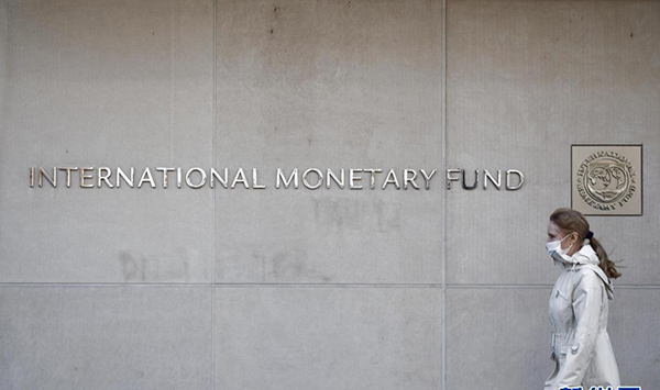 3月30日,一名行人走过位于美国华盛顿的国际货币基金组织总部大楼。新华社发(沈霆摄)