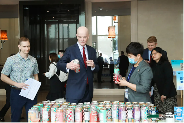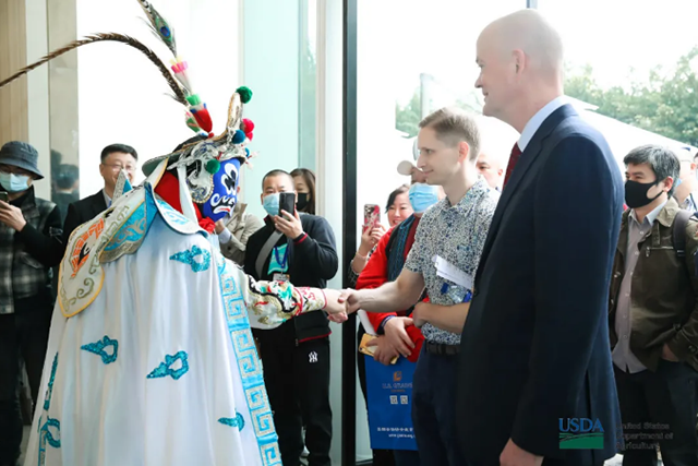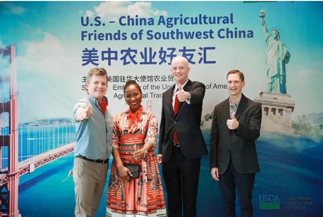 4月6日,美国农业贸易机构和中国的进口商们在成都向近500名宾客展示了50多种高品质美国美食、啤酒、葡萄酒、和酒精饮料产品。展示中的农业产品包括美国的禽、肉制品,获奖的乳品和奶酪,独特的冷冻马铃薯、大米,以及美味的蔓越莓、葡萄干、开心果等。