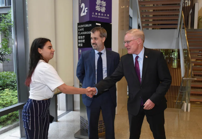 美国驻华使馆临时代办傅德恩此刻正享受着他在上海的美好时光!他周一下午参观了上海纽约大学的校园,借此良机与师生进行了收获颇丰的互动交流,同时也见识到了这里的学术合作氛围。非常感谢东道主提供了如此难忘的访问和对话机会!