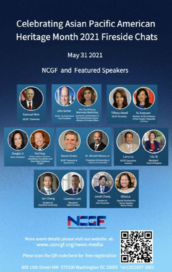 “梦想与成就”网络炉边谈话活动系美国国家中国园基金会为庆祝亚太裔传统月而举办。活动亦邀请了苏里南驻美大使NiermalaBadrisin、《亚洲人周刊》基金会负责人方以岱、哥伦比亚特区大学校长RonaldMason.Jr、马里兰州参议员林立图及众议员齐丽丽等参与。活动于举办当天在网络直播后,在基金会网站及当地多家网络媒体播放。