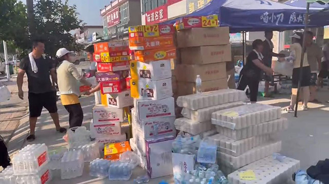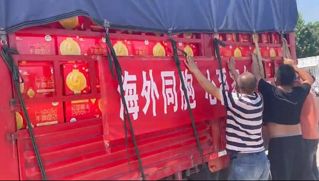 26日,四辆满载着芝加哥华人社区捐赠的瓶装水、面包、方便面和火腿肠等第一批救灾物品的卡车,抵达河南省新乡市卫辉和辉县。由于水灾非常严重,当地热心公益人士在洪水淹没的路段,用铲车开路把援助物资运到灾区,为处在没水、没电、没电话信号困境中的民众排忧解难。