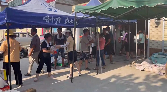 河南当地民众接收大芝加哥地区爱心人士物资(图片来源:华联会)