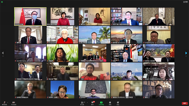 12月22日,中国驻旧金山总领馆举办领区侨界新年线上座谈会。王东华总领事出席并发表讲话,邹永红副总领事主持座谈会。领区40多家主要侨团60多名代表参会。