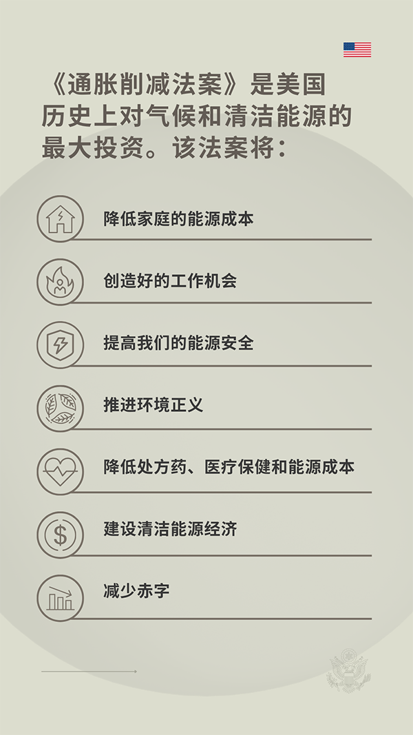 《通胀削减法案》是美国历史上对气候和清洁能源的最大投资。该法案将: