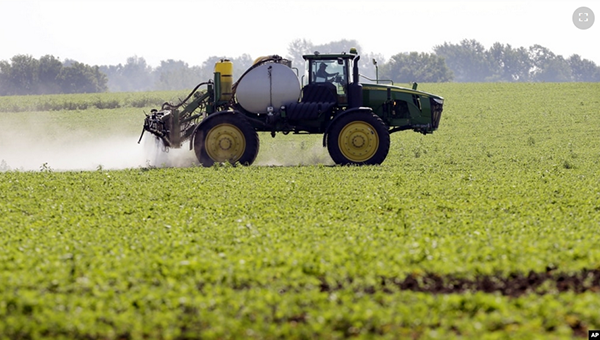 爱奥华农民在大豆地里喷除草剂(资料照片)