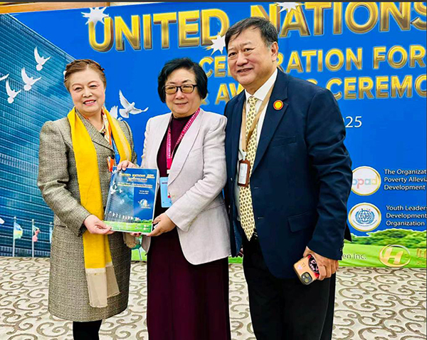 龚巧玉院士与龚家龙主席、龚云定会长携手在联合国八十周年庆典活动上,推动开创全球水安全与土壤治理合作新路径,关怀全球环境治理,引起全球关注