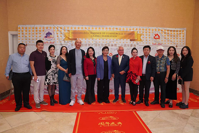 奉商美国总会主席朱俊英在致辞中介绍了为期三天的系列庆典活动:当日上午举办了Home Co成立20周年暨会馆乔迁仪式和正在举行十周年庆典晚宴;29日下午开设税务、金融专题讲座由税务专家Michael Ye和金融博士刘毅主讲,晚间呈现Home Co专场音乐会;30日下午举办"HomeCo杯"掼蛋邀请赛,晚间将举办庆功宴。朱俊英主席强调,商会十年成长离不开社会各界的鼎力支持,未来将继续秉承"奉与爱"的核心精神,凝聚全球奉商力量,深耕中美交流合作,致力于打造百年商会基业,书写更辉煌的发展篇章。