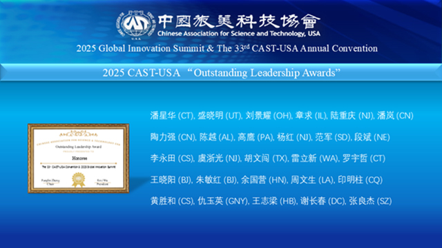 美国东部时间2025年10月25日,中国旅美科技协会总会(CAST-USA)在线隆重地举办了2025全球科技创新高峰论坛暨中国旅美科协第33周年大型庆典活动。来自世界各地的一万五千多名观众观看了大会实况。此次盛会受到了中国、美国、加拿大、及欧洲科技界、学术界、政界、商界和侨界的高度重视和广泛的社会关注。