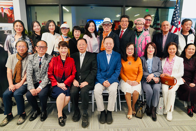 我也是不久前才第一次听说“湾品汇”。世事总有缘起。在美西华人学会成立 46 周年庆典上,我看到一幅《千里江山图》临摹卷,便当场竞拍下来——打算带领学生分段临摹,用传统艺术浸润他们的心灵,也让文化的根脉在他们这一代继续生长。主持人宣布,这幅作品由美中电商贸易协会创会会长谢建华捐赠。当时谢会长未能出席活动。几日后,我在刘荣文教授家的金秋烤肉会上,第一次与他相见。