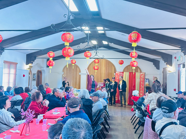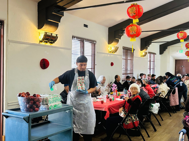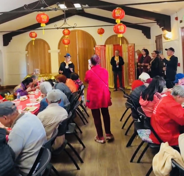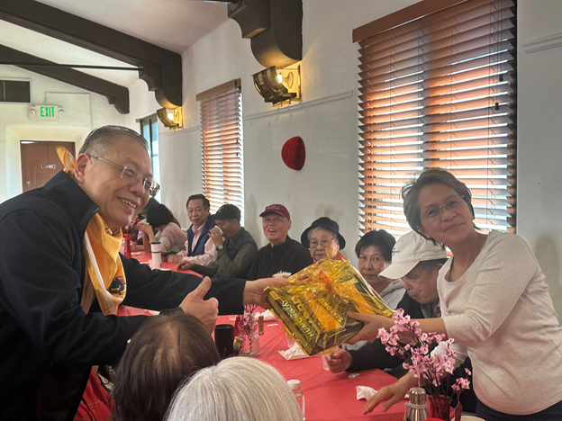 “春节送温暖”早已成为狮子会多年来坚持的传统公益项目。今年参与活动的除了会长Tony Ding外,还有第一副会长 Mary 贺晓慧, 第二副会长 Golden Tang,财务长 Pauline 鲍孜洵, 会员部部长 Arthur 彭南林, 理事李涛。以及圣盖博市社区义工TinaChen,共同为长者们筹备了一场温馨而充满年味的迎春聚会。