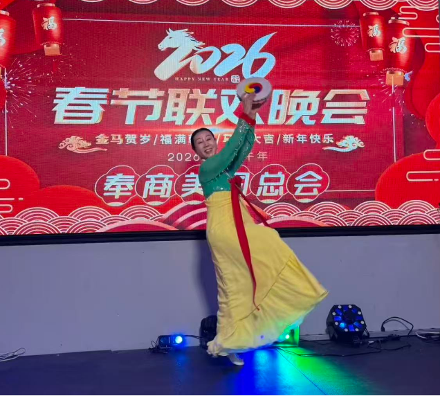 大会期间,与会嘉宾合影留念,并向祖国人民拜年。文艺演出由奉商艺术团倾情呈现,Lucy代表艺术团讲话,并感谢美国凯丽公司对本次活动的产品支持。
