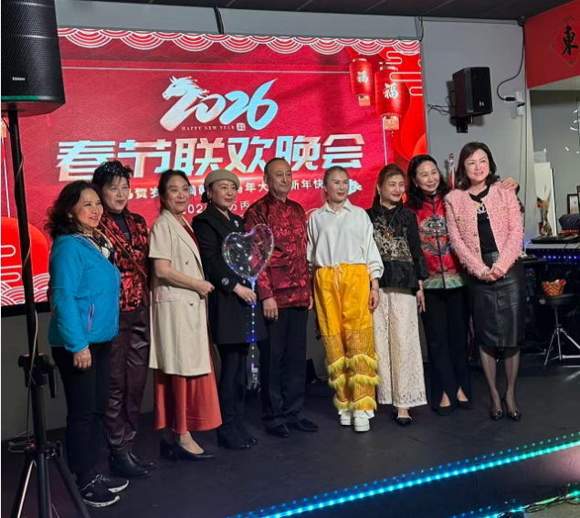 随后,美国华人社团联合会主席张勇、辽宁省侨联副主席黄晓东分别致辞。共同主席孙伟与副会长郑伟宣读《2025年度十六件大事记》,副理事长兼青联副主席王菲公布年度财务审计报告。朱俊英主席作年度总结讲话。